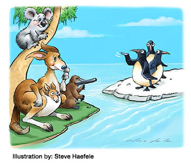 Geologists say South America, Africa, Australia and India broke off from Eurasia and North America around 200 million years ago, then the southern supercontinent started crumbling to pieces about 150 million years ago. Australia’s last continental connection was Antarctica. Australia’s isolation is imprinted on its animals.