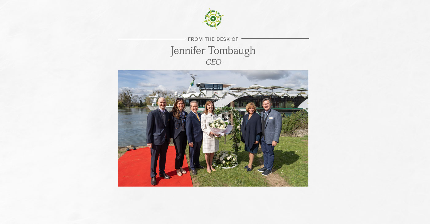 I’ve just returned from France, where an early April in Paris greeted us with chestnuts in blossom—following two extraordinary riverboat christenings and time spent with our partners, our Board, and members of the Tauck family.